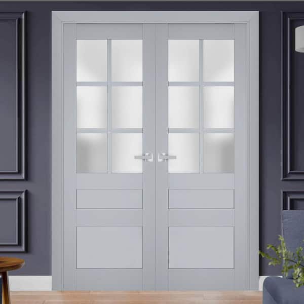 84 in. x 84 in. 2 Panel Matte Grey Finished Solid Wood Sliding Door with Hardware