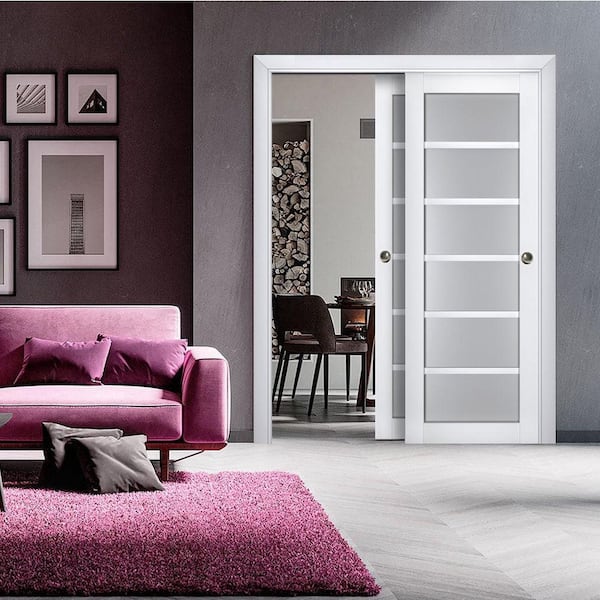 84 in. x 84 in. 2 Panel Matte Grey Finished Solid Wood Sliding Door with Hardware