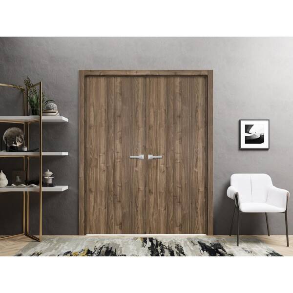 84 in. x 84 in. 2 Panel Walnut Finished Solid Wood with Honeycomb Sliding Door with Hardware