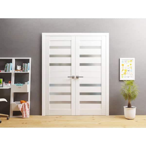84 in. x 96 in. 2 Panel White Finished Solid MDF Sliding Door with Hardware