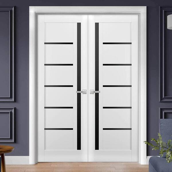 84 in. x 96 in. 2 Panel White Finished Solid MDF Sliding Door with Hardware