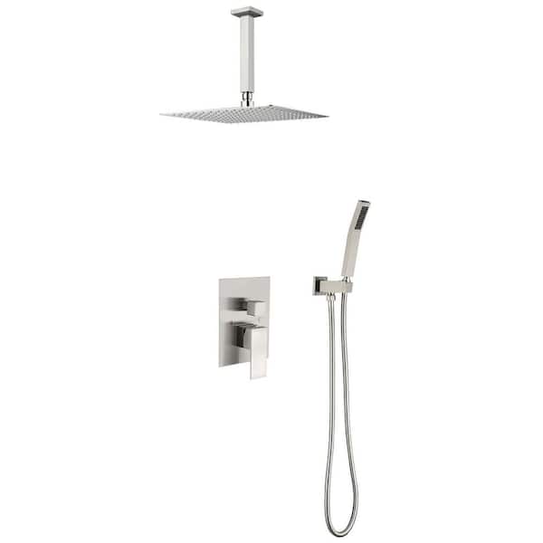 1-Spray Patterns 16 in. Ceiling Mount Dual Fixed and Handheld Shower Head 2.5 GPM in Brushed Nickel