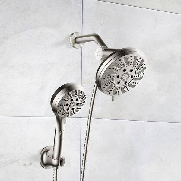 11-Spray Patterns 1.5 GPM 7 in. Dual Wall Mount Fixed and Handheld Shower Head in Brushed Nickel (Valve Included)