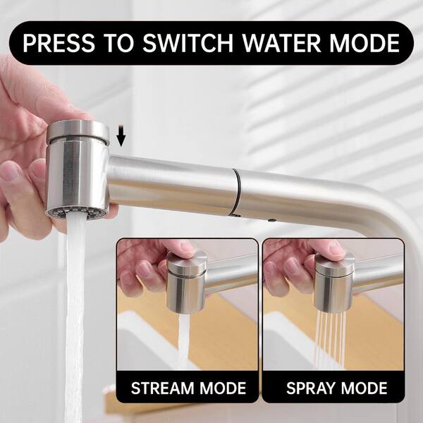12.2 in. H Brushed Single Handle Pull Out Sprayer Kitchen Faucet with 360° Spout Swivel