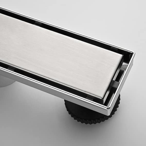 12 in. Linear Shower Drain with Leveling Feet in Brushed Nickel