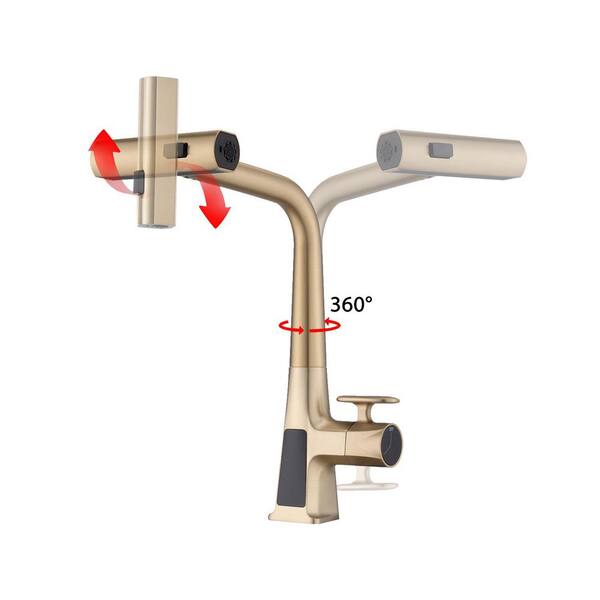 15.75 in. H Brushed Gold Single Handle Pull Down Sprayer Kitchen Faucet with 360° Swivel and Temperature Display