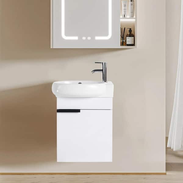 16.80 in. W x 11.60 in. D x 21.30 in. H Floating Wall-Mounted Bath Vanity in Gloss White with White Ceramic Top