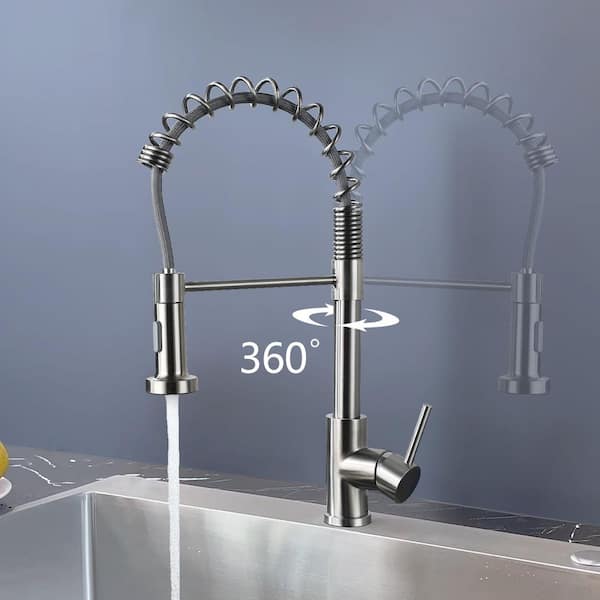 18.89 in. Single Handle 360° Spout Swivel Pull Down Sprayer Kitchen Sink Faucet in Brushed Nickel
