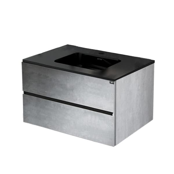 19 in. D x 20 in. H Wall-Mounted Bathroom Vanity in Cement Gray Panel with Matt Black Quartz Vanity Top with Sink