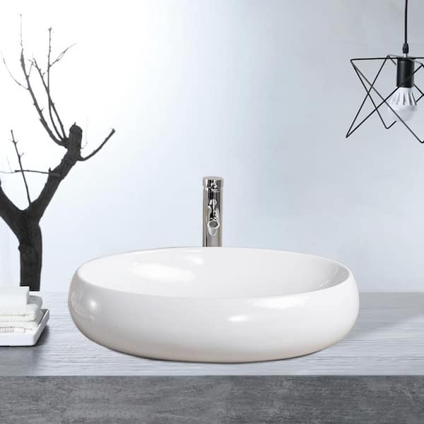 24 in. Ceramic Oval Vessel Sink Top Mount Bathroom Sink Basin in White