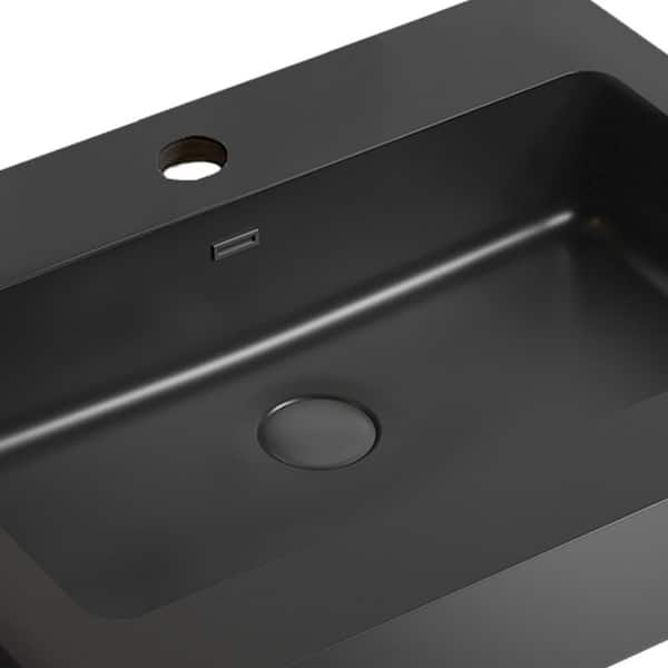 24 in. Drop-In Bathroom Sink in Matte Black Quartz Vanity Top