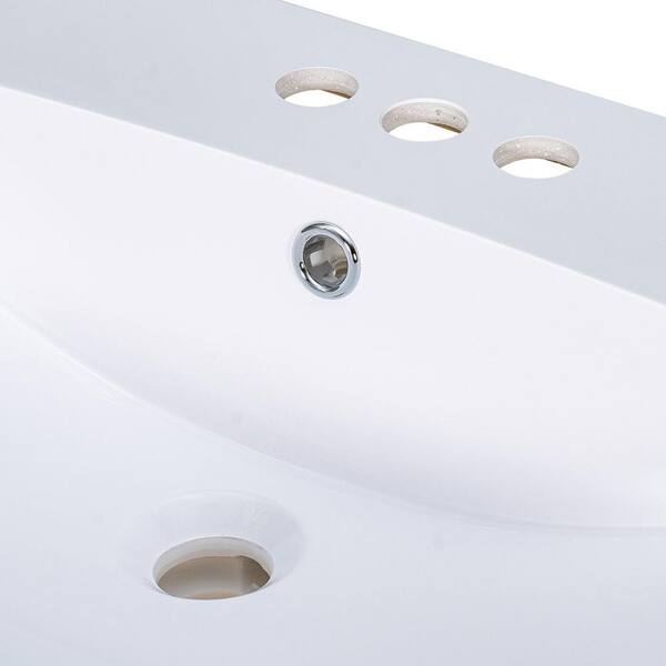 24 in. Drop-In Rectangular Integrated Vanity Top Bathroom Sink in White Resin with 3-Faucet Holes