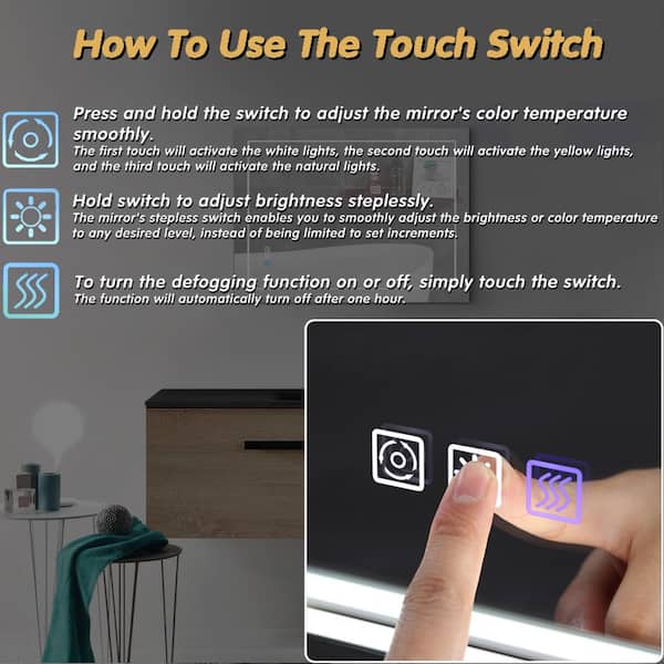 24 in. W x 32 in. H Rectangular Frameless Anti-Fog LED Light Wall Mounted Bathroom Vanity Mirror in Aluminum