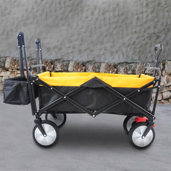 3.10 cu. ft. 360-Degree Rotate 600D Fabric Steel Frame Utility Outdoor Folding Garden Cart with Breaks in Yellow