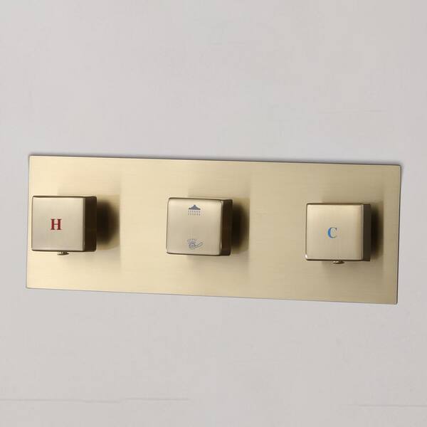 3 Handle 2-Spray Shower Faucet with 10 in. Rain Shower Head 1.8GPM in Brushed Gold