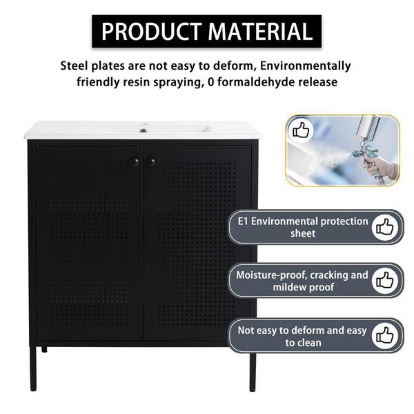 30.0 in. Freestanding Black Bath Vanity with White Ceramic Sink Top Unassembled