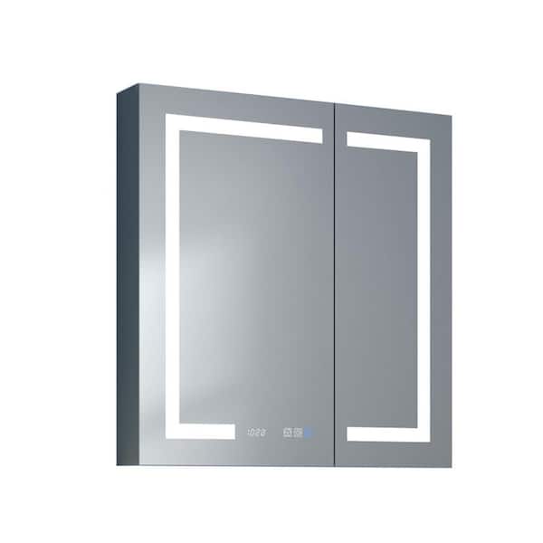 30 in. W x 32 in. H Rectangular Silver Aluminum Recessed/Surface Mount LED Medicine Cabinet with Mirror