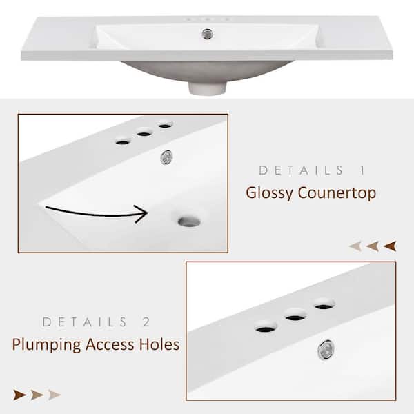 36 in. Drop-In Rectangular Integrated Vanity Top Bathroom Sink in White Resin with 3-Faucet Holes