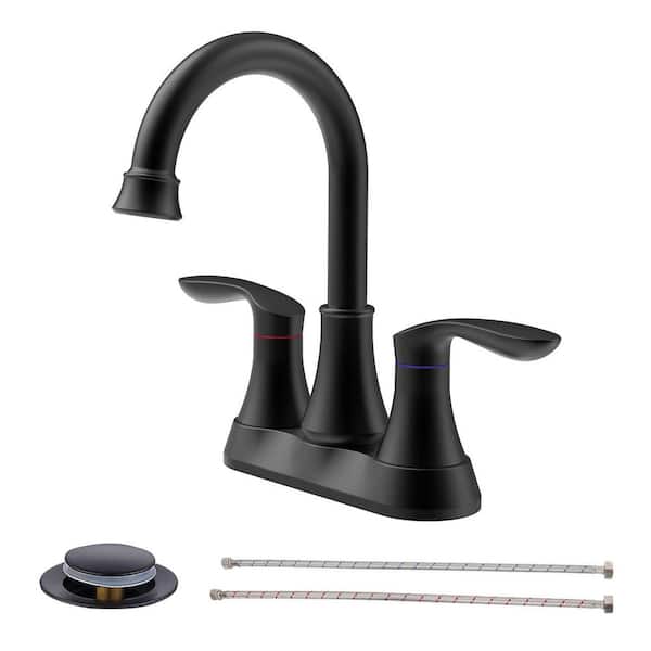 4 in. Centerset 2-Handle 3-Hole Bathroom Faucet with Pop up Drain in Matte Black