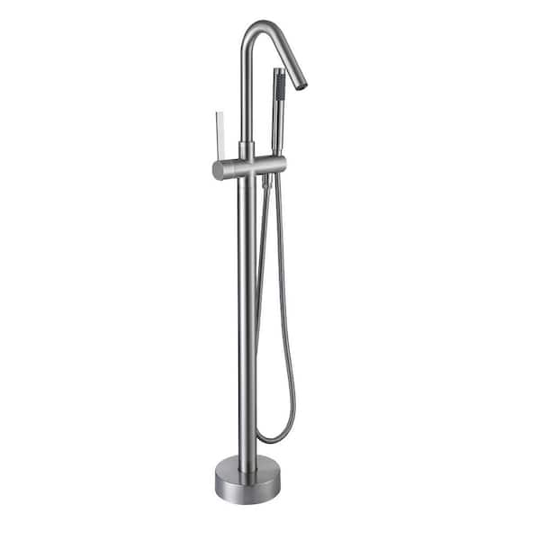 43-3/4 in. Single-Handle Freestanding Tub Faucet with Handheld Shower in Brushed Nickel