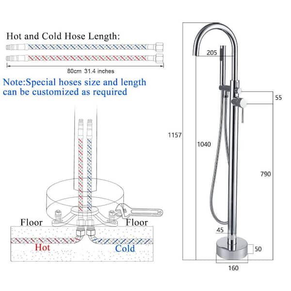 44 7/8-in Single-Handle Freestanding Tub Faucet with Handheld Shower in Chrome