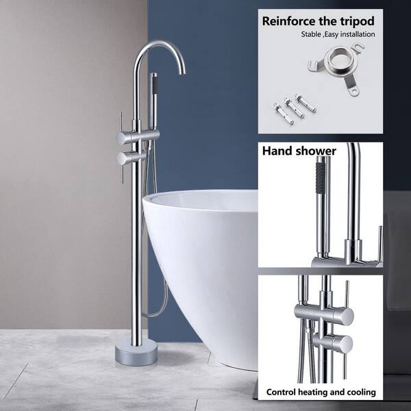 45 5/8-in 2-Handle Residentail Freestanding Tub Faucet with Hand Shower in Chrome
