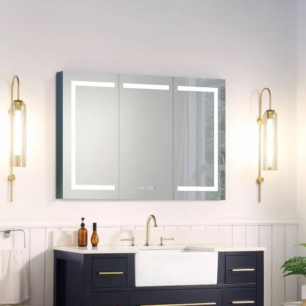 48 in. W x 32 in. H Rectangular Silver Aluminum Surface/Recessed Mount LED Medicine Cabinet with Mirror