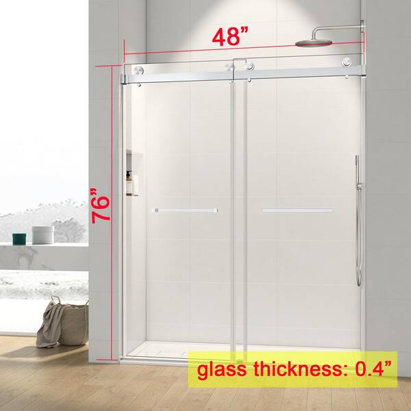 48 in. W x 76 in. H Double Sliding Frameless Shower Door/Enclosure in Brushed Nickel with Clear Glass