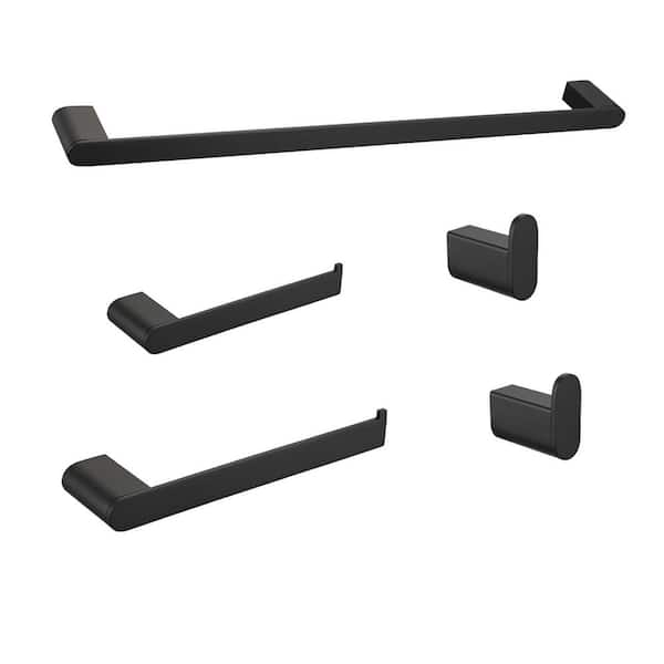 5-Piece Stainless Steel Bathroom Hardware Set with Mounting Hardware in Matte Black