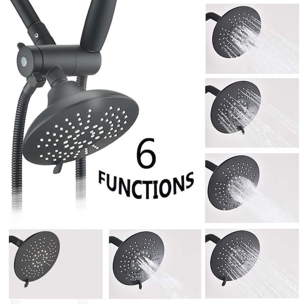 6-Spray Wall Mount Handheld Shower Head 1.8 GPM in Matte Black
