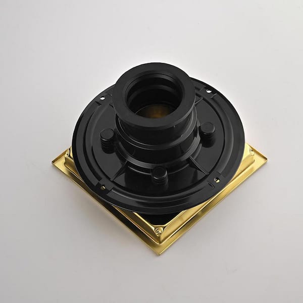 6 in. Square Stainless Steel Grid Shower Floor Drain with Flange in Brushed Gold