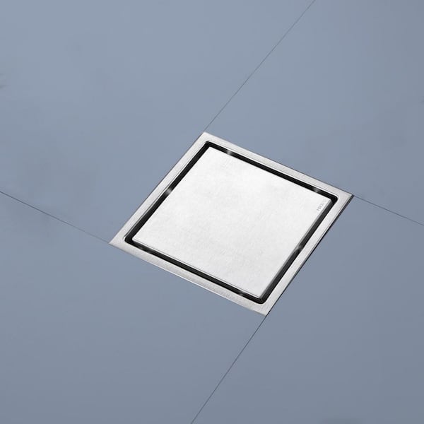 6 in. Square Stainless Steel Shower Floor Drain with Flange in Brushed Nickel