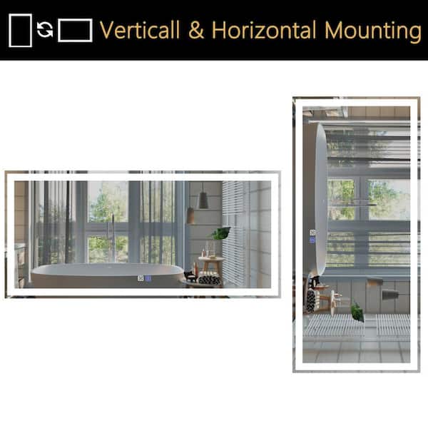 60 in. W x 28 in. H Rectangular Frameless Anti-Fog LED Light Wall Mounted Bathroom Vanity Mirror in White