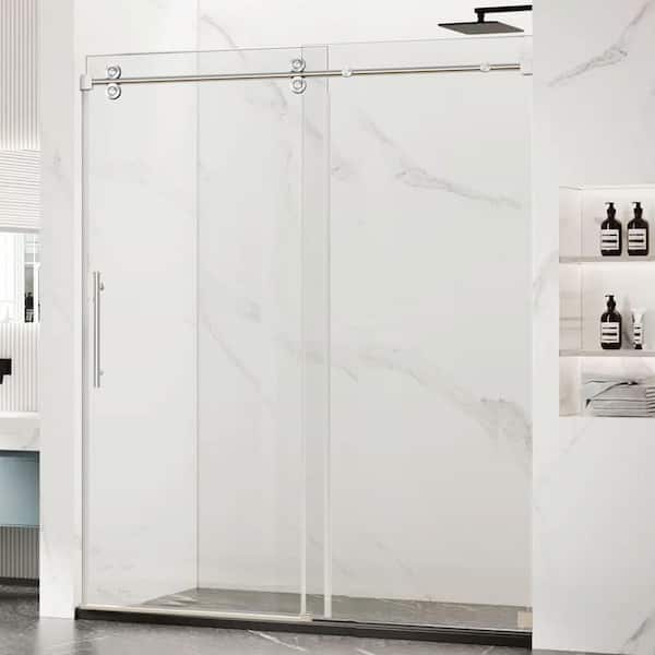 60 in. W x 66 in. H Single Sliding Frameless Shower Door /Enclosure in Brushed Nickel Finish with Clear Glass