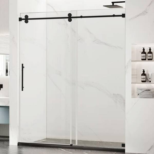 60 in. W x 66 in. H Single Sliding Frameless Shower Door /Enclosure in Matte Black Finish with Clear Glass