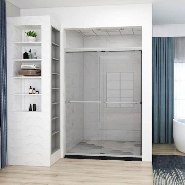 60 in. W x 72 in. H Single Sliding Frameless Shower Door/Enclosure in Chrome with Clear Glass