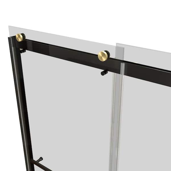 60 in. W x 74 in. H Freestanding Double Sliding Frameless Shower Enclosure in Matte Black Finish with Tempered Glass