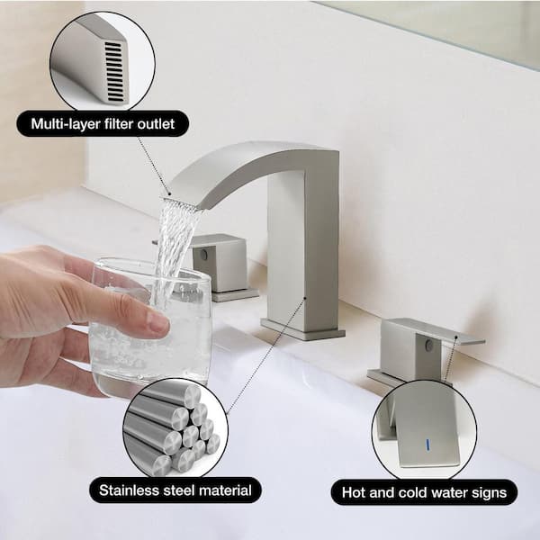 8 in. Widespread Double Handle Bathroom Sink Faucet with Waterfall Spout in Brushed Nickel (1-Pack)