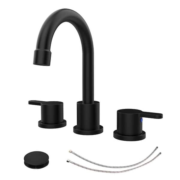 Deck Mount 2 Handles Bathroom Faucet with Pop Up Drain Assembly in Matte Black (1-Pack)