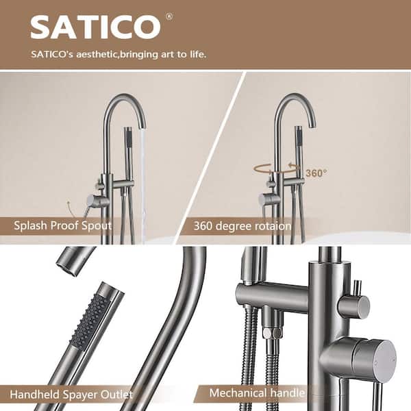 High Arch Single-Handle Freestanding Tub Faucet Bathtub Filter with Handheld Shower in Brushed Nickel