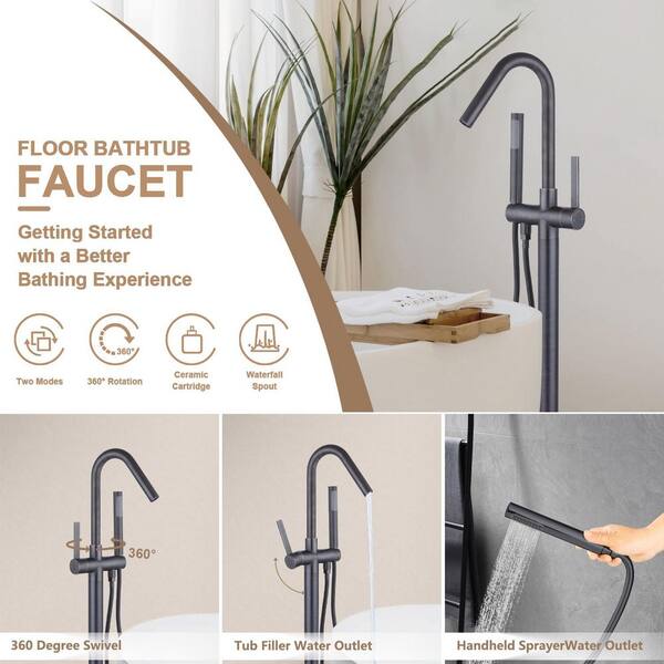 High Arch Single-Handle Freestanding Tub Faucet Bathtub Filter with Handheld Shower in Venetian Bronze