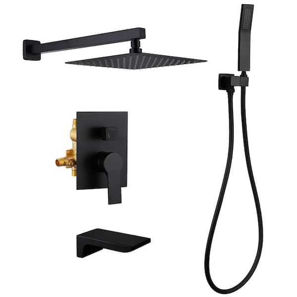 Single Handle 1-Spray Tub and Shower Faucet 2.5 GPM with 10 in. Rain Shower Head in Black Valve Included