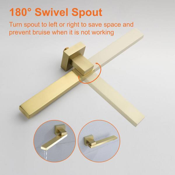 Single-Handle 3-Spray Hand Shower Retractable Tub Faucet with 10 in. Rain Shower Heads in Brushed Gold(Valve Included)