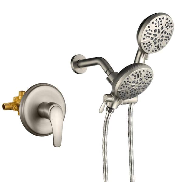Single-Handle 7-Spray Patterns with 1.75 GPM 4.72 in. Wall Mount Handheld Shower Head in Brushed Nickel (Valve Included)