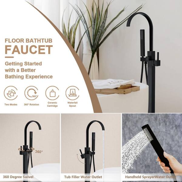 Single-Handle Classical Freestanding Bathtub Faucet with Hand Shower in Matte Black