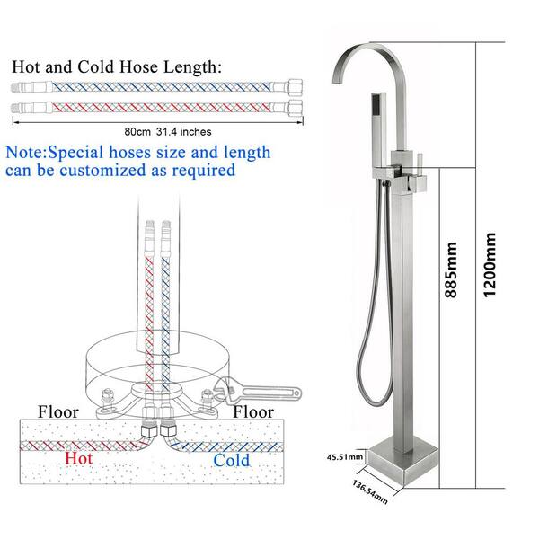 Single-Handle Classical Freestanding Tub Faucet with Hand Shower in Brushed Nickel