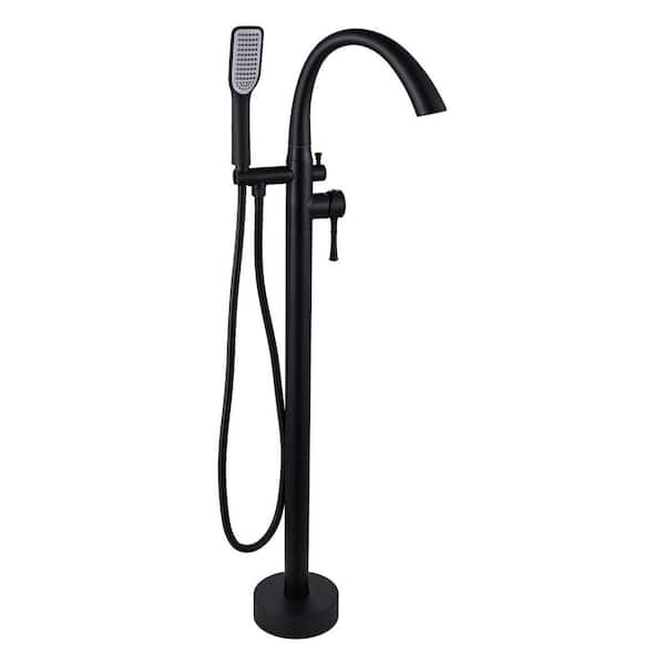Single-Handle Floor Mount Freestanding Tub Faucet Bathtub Filler with Hand Shower in Matt Black