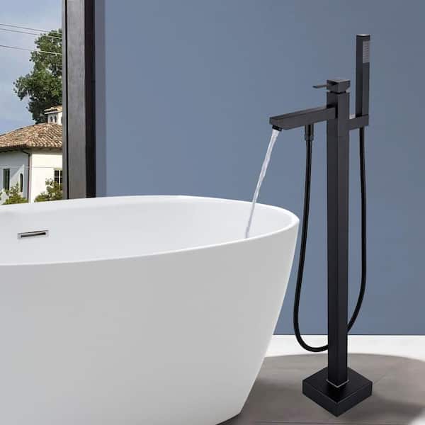 Single-Handle Floor Mounted Freestanding Tub Faucet with Hand Shower in Matte Black