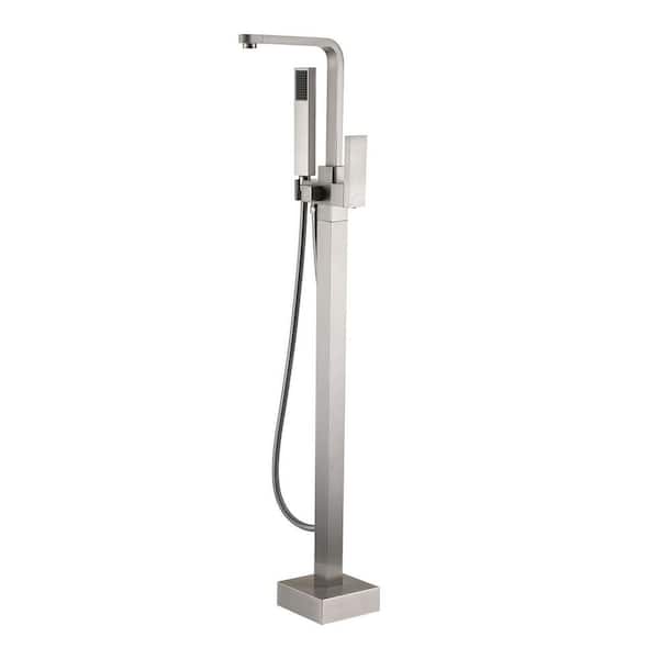 Single-Handle Freestanding Bathtub Faucet with Hand Shower Floor Mount in Brushed Nickel