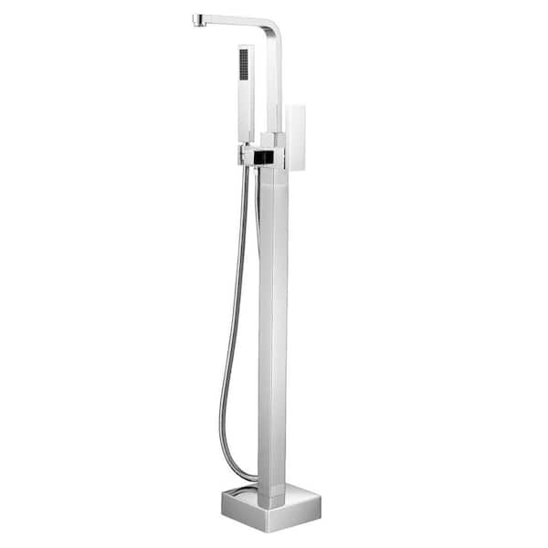 Single-Handle Freestanding Bathtub Faucet with Hand Shower Floor Mount in Chrome